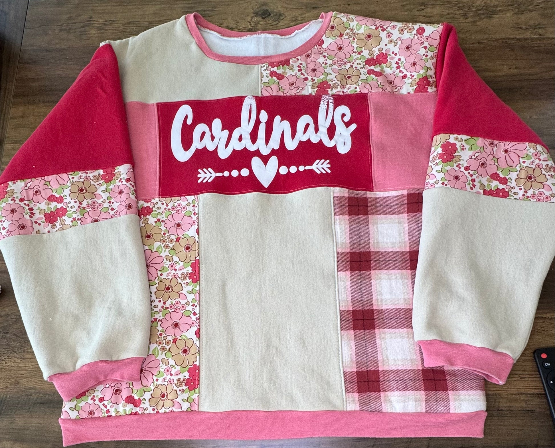 SOLD OUT** Custom Made - Melissa, TX "Cardinals" Patchwork Sweatshirt. One of a Kind. Size XL-1X